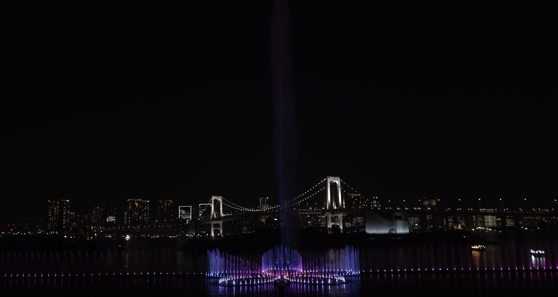 夜間のライティングは濃淡さまざまな桜カラーを散りばめ、桜が舞い散る情景を光で表現。光の明暗やストロボ効果が楽曲の力強さを際立たせ、桃色から白へと駆け抜けるグラデーションが疾走感と桜吹雪のような広がりを生み出します。三味線の速弾きに合わせて鼓動する光の瞬きと、ダイナミックな噴水の動きの一体感をお楽しみください。